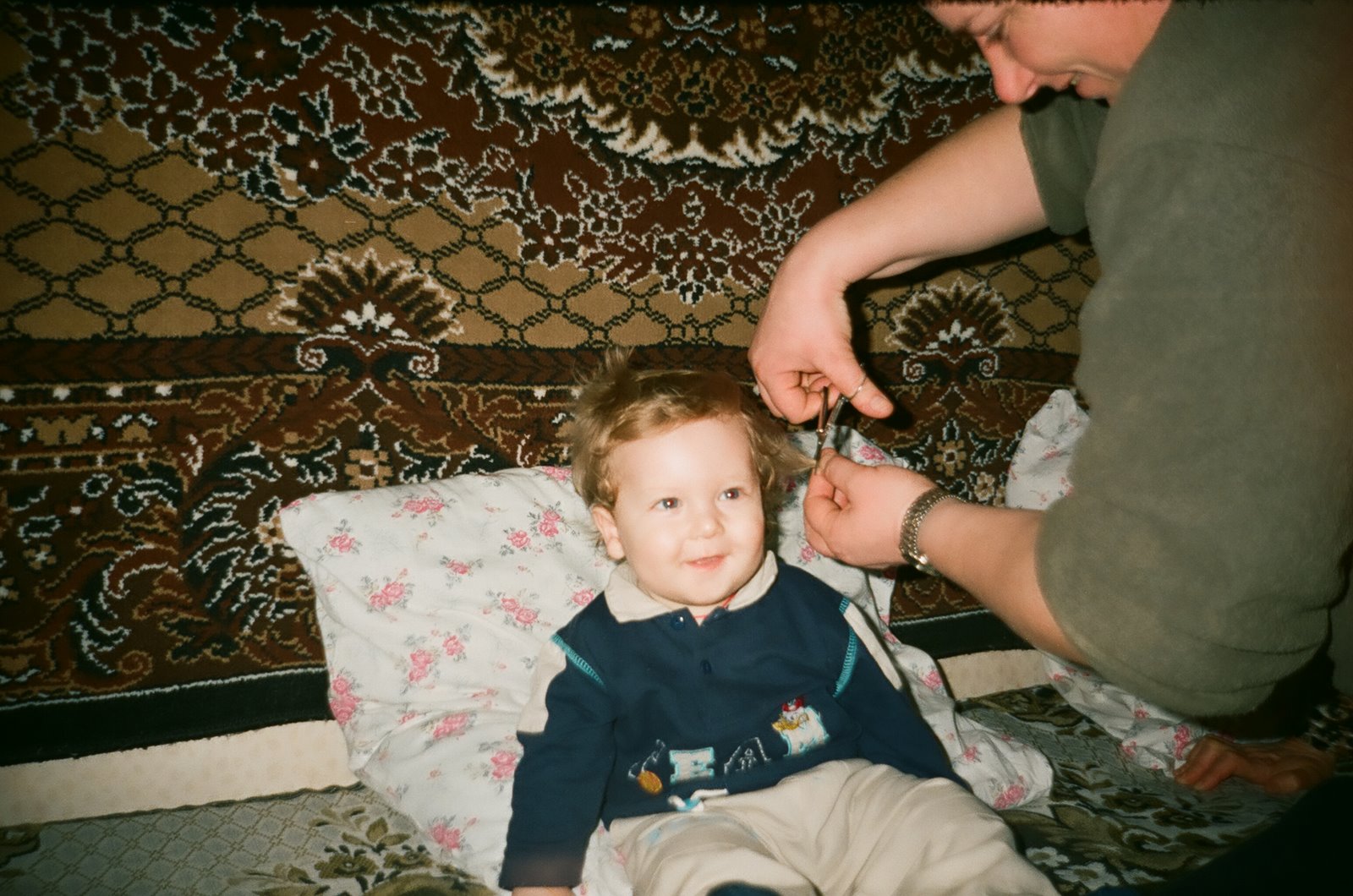 În toate pozele mă vedeţi zîmbind…asta pentru că eu nu înţeleg ce se întîmplă cu adevărat în jurul meu, trăesc într-o lume a mea şi sunt fericit alături de părinţii mei.